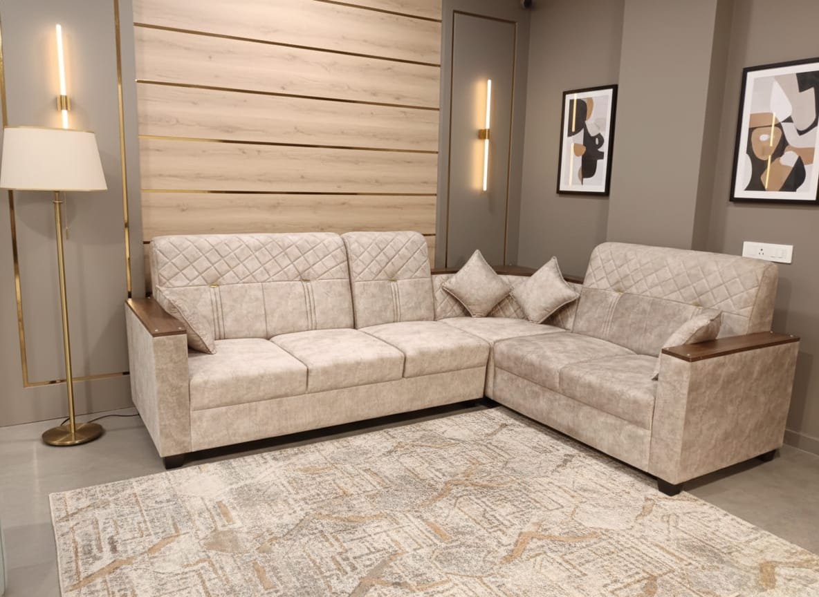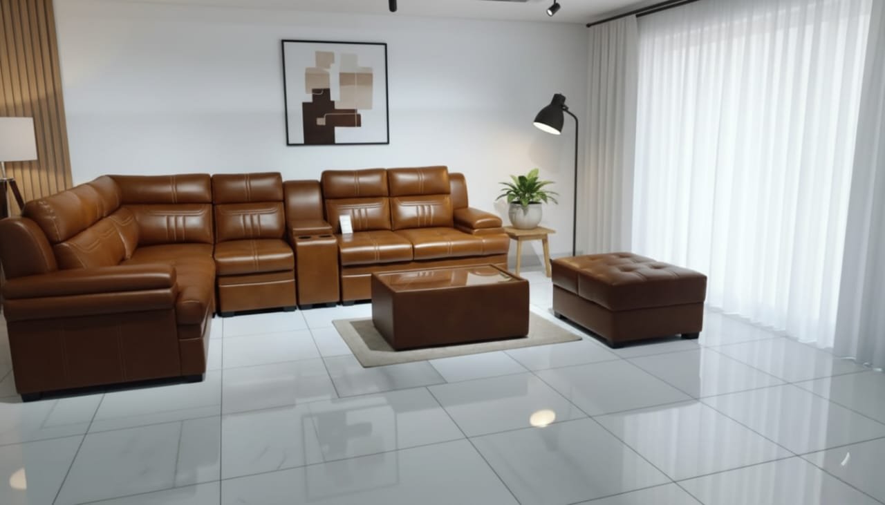 Structured Silhouette: Each piece features a boxy, architectural frame with high track arms that sit flush with the backrest, creating a clean and uniform profile.